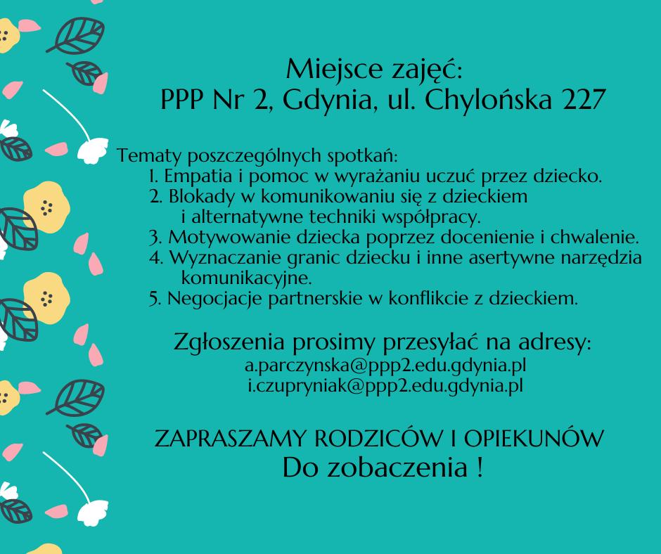 zachęcamy do zapoznania się z ofertą Poradni Psychologiczno- Pedagogicznej, która zaprasza na Szkołę dla Rodziców.