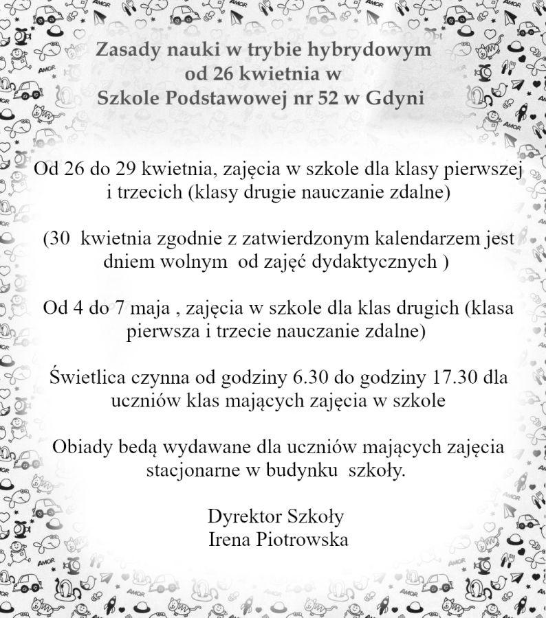 Od 4 maja br. uczniowie klas I-III wracają do nauki stacjonarnej w szkole, godnie z planem lekcji,
