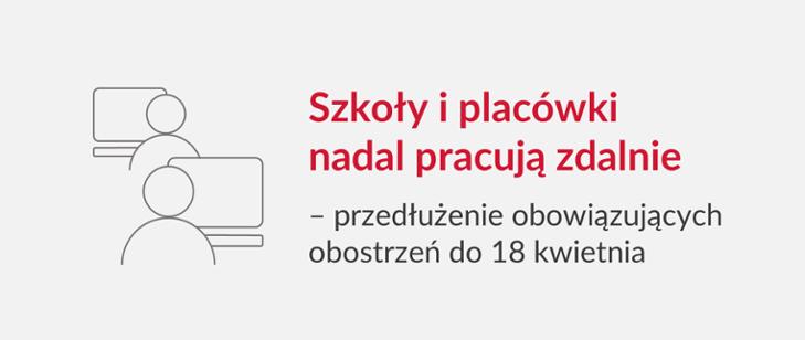 Informujemy, że z uwagi na nadal utrzymujący się wysoki poziom zachorowalności w kraju i konieczność zahamowania pandemii, nauczanie zdalne w klasach I-III szkoły podstawowej zostaje przedłużone do 18 kwietnia.